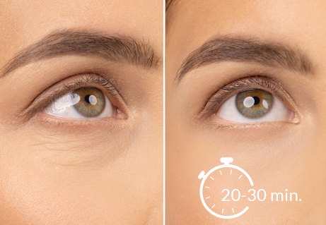 Formelen med kollagen, retinol, ceramider og vitamin C gir en helhetlig anti-age- og pleiende effekt. Allerede etter første bruk føles huden dypt fuktet, glattere og mer spenstig. Ved regelmessig bruk reduseres mørke ringer og poser, fastheten forbedres, og øyepartiet lysnes – for et synlig yngre, uthvilt utseende, med resultater som kan sammenlignes med mesoterapi eller karboksyterapi.